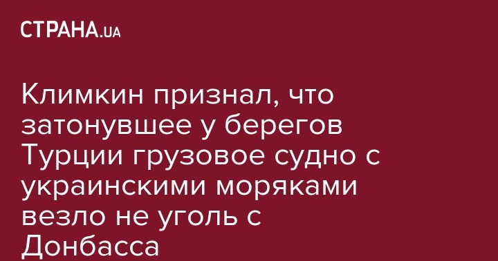 Грузовое судно, затонувшее в начале января возле берегов Турции с украинскими моряками на борту, не перевозило уголь с неподконтрольных Украине территорий, сообщил министр иностранных дел Украины Павел Климкин.