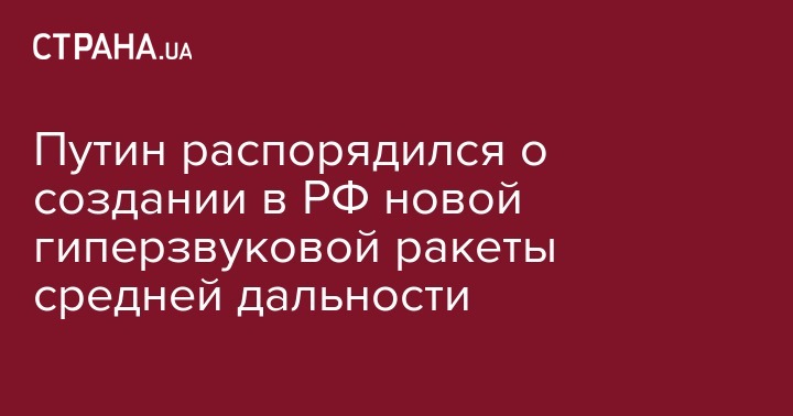 Путин распорядился о создании в РФ новой гиперзвуковой ракеты средней дальности
