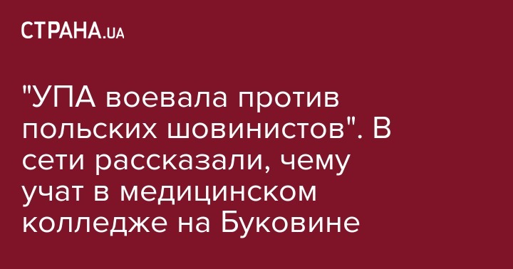 В Вашковецком медицинском колледже на Буковине студентам на занятиях рассказывают о том, как "УПА воевала против польских шовинистов". Об этом сообщил директор Украинского еврейского комитета Эдуард Долинский на своей странице в социальной сети Facebook.