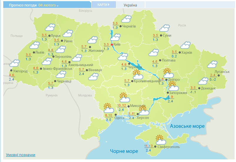 Синоптики отметили, что 4 февраля на большей части Украины будет туман, видимость 200-500 м. Также в понедельник будет облачно, но еще без существенных осадков.
