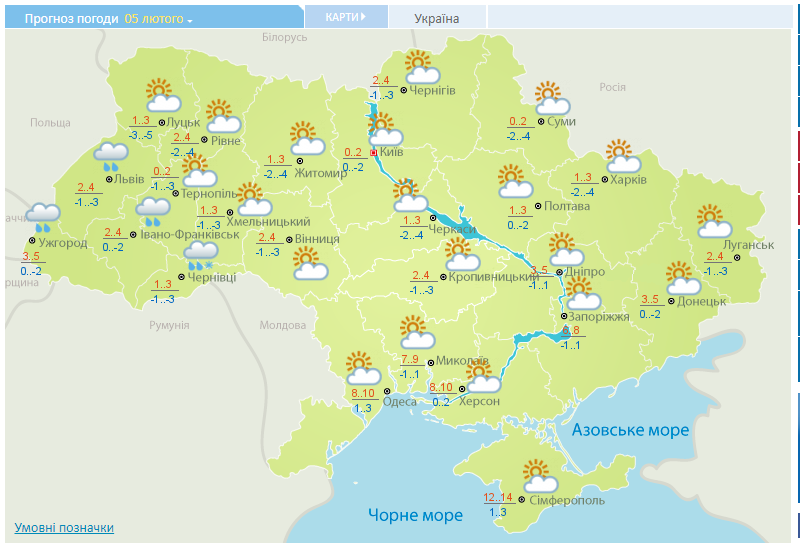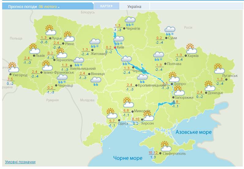 Днем 5 февраля в Карпатском регионе, в течение 6 февраля в западных, северных и центральных областях мокрый снег и дождь, на остальной территории, ночью 5 февраля в Украине без существенных осадков.