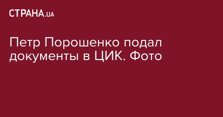 Президент Украины Петр Порошенко подал документы в Центральную избирательную комиссию для регистрации кандидатом на президентских выборах. Об этом в Facebook сообщил пресс-секретарь главы государства Святослав Цеголко.