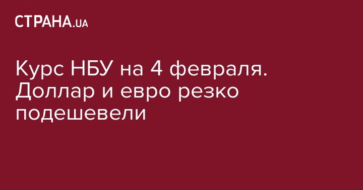 Национальный банк Украины (НБУ) установил на понедельник, 4 февраля, курс основных валют по отношению к гривне. В частности, относительно доллара национальная валюта укрепилась сразу на 17 копеек. Таким образом за единицу американской валюты сегодня просят 27,57 грн. Об этом говорится на официальном сайте регулятора.