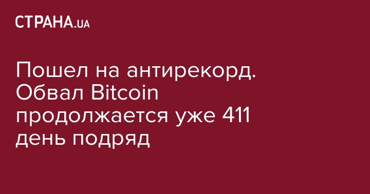 Пошел на антирекорд. Обвал Bitcoin продолжается уже 411 день подряд