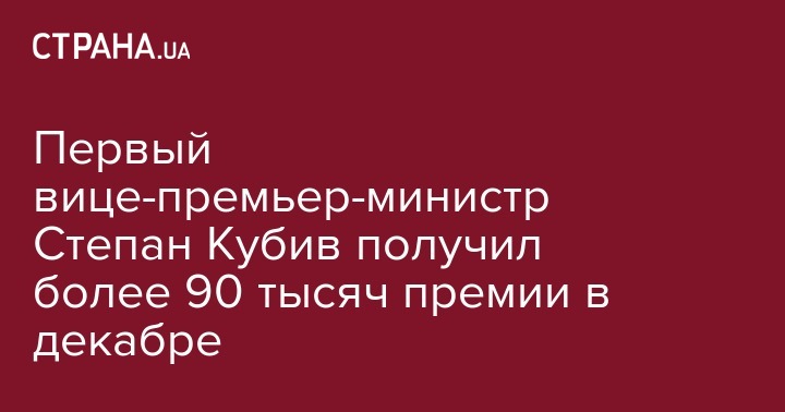 Первый вице-премьер-министр Степан Кубив получил более 90 тысяч премии в декабре
