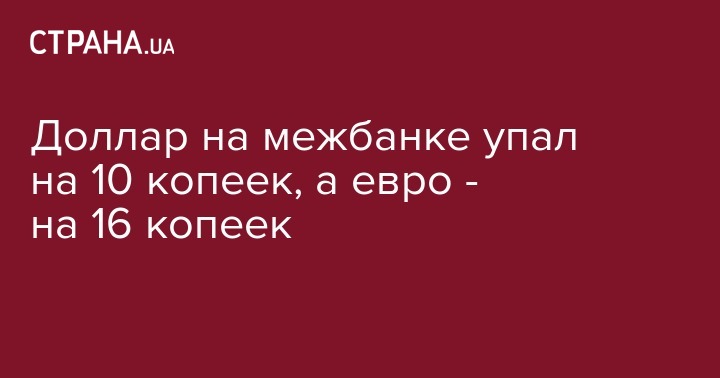 Доллар на межбанке упал на 10 копеек, а евро - на 16 копеек
