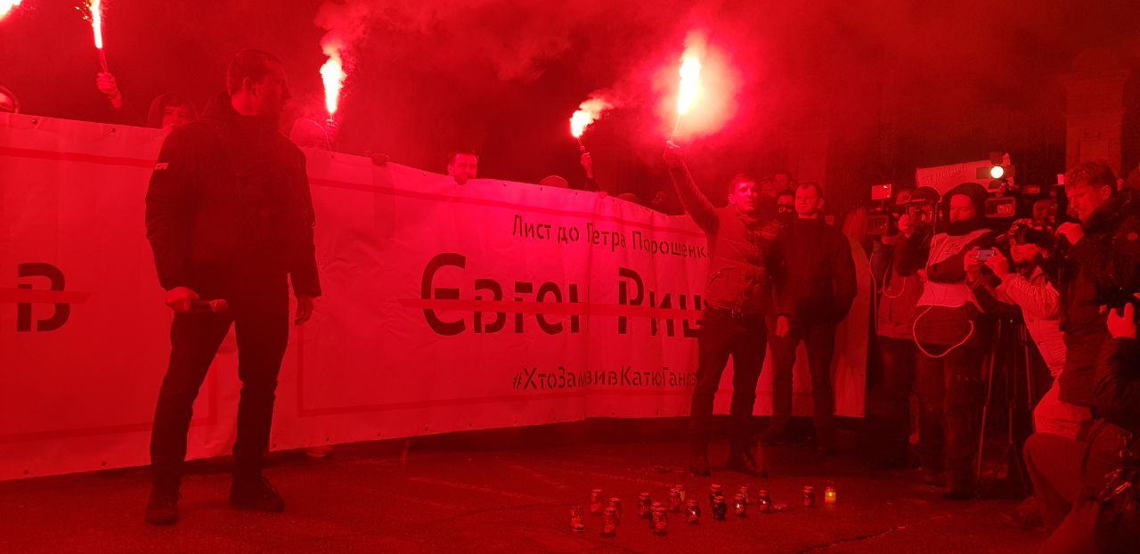 Под стенами Администрации президента в украинской столице началась акция "Хто замовив Катю Гандзюк?". На Банковой собралось несколько десятков участников акции с требованием уволить представителей БПП и Батькивщины, которые имеют причастность к убийству Катерины Гандзюк - Андрей Гордеев, Евгений Рищука и Владислав Мангера, сообщает корреспондент "Страны".