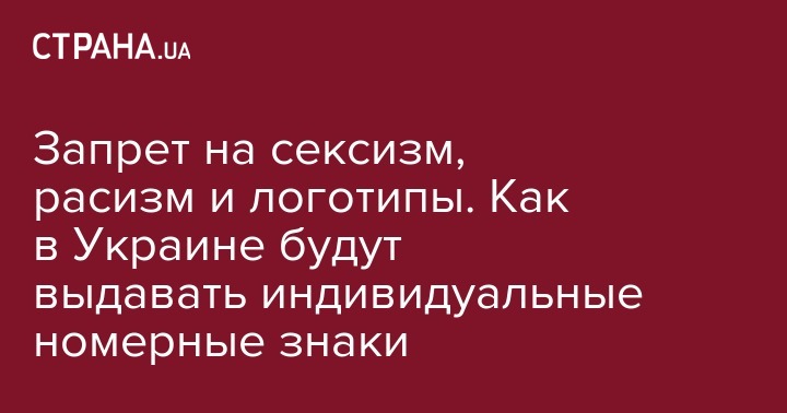 На индивидуальных номерах запрещены надписи дискриминационного характера, в частности, по признакам социального и имущественного положения, пола, образования, рода и характера занятий, места жительства. Также под запретом буду графические элементы дискриминационного характера и графические элементы, схожие по начертанию с буквами или цифрами. Запрещено также одновременное использование букв украинского и латинского алфавитов, за исключением букв, совпадающих по надписи.
