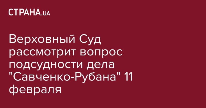 Верховный суд Украины 11 февраля рассмотрит вопрос об определении подсудности дела народного депутата Украины Надежды Савченко и бывшего руководителя Центра освобождения пленных "Офицерский корпус" Владимира Рубана.