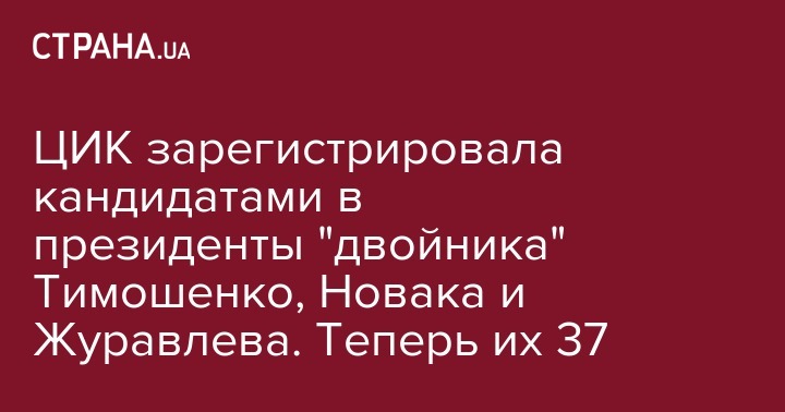 ЦИК зарегистрировала кандидатами в президенты "двойника" Тимошенко, Новака и Журавлева. Теперь их 37
