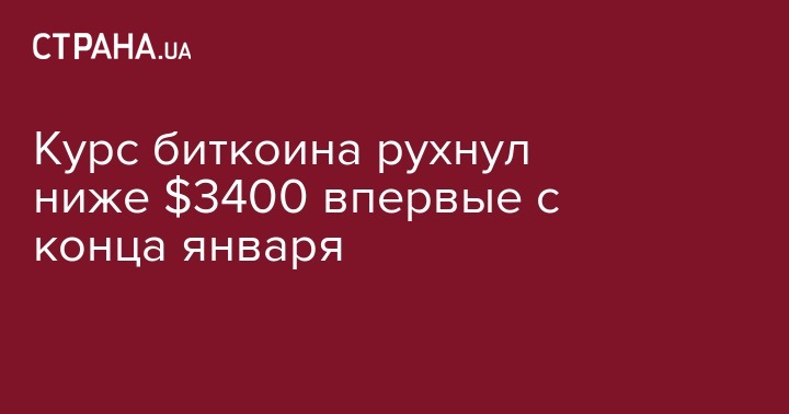 Курс биткоина рухнул ниже $3400 впервые с конца января
