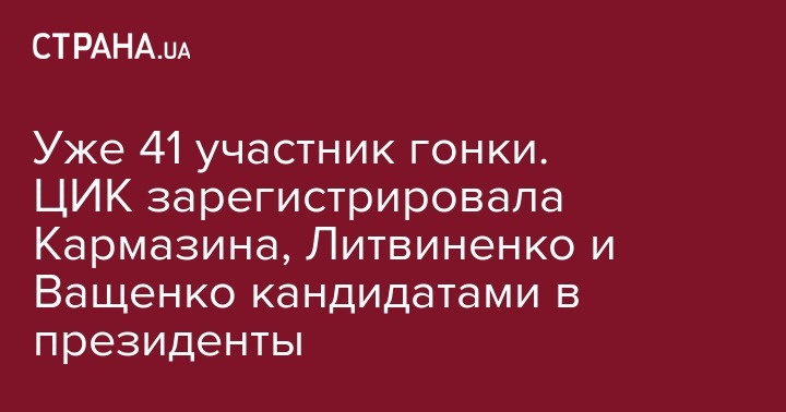 Таким образом, по состоянию на день 7 февраля ЦИК зарегистрировала уже 41 кандидата в президенты Украины. Это абсолютный рекорд по количеству кандидатов на выборах высшего уровня в Украине.