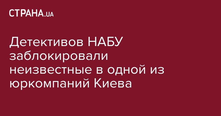 Детективы Национального антикоррупционного бюро Украины (НАБУ - прим.), которые проводили обыск в рамках уголовного производства в отношении заместителя прокурора Киевской области Александра Колесника, оказались заблокированными в ООО "Юридической компания "Студия права" (Киев, ул. Эспланадная, 20) неизвестными в камуфляже. Детективам НАБУ поступили угрозы силового захвата помещения юр.компании, сообщает Интерфакс со ссылкой на пресс-службу НАБУ.