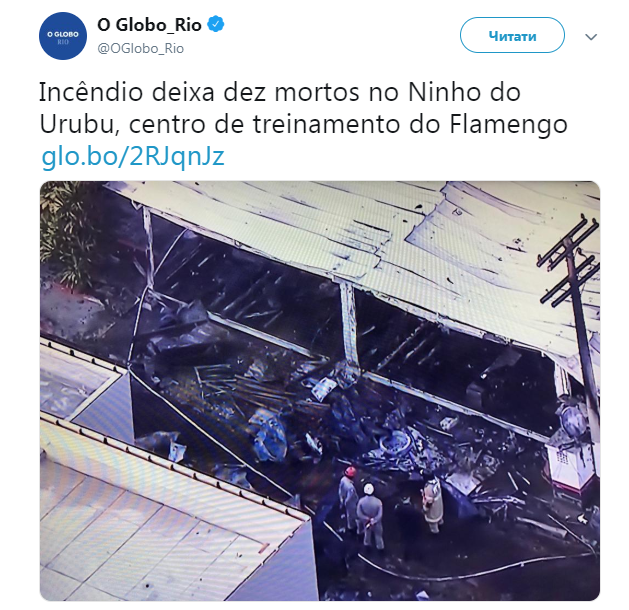В Бразилии произошла чудовищная трагедия. Здесь, в Рио-де-Жанейро, на тренировочной базе знаменитого клуба Фламенго, вспыхнул сильный пожар. По предварительным данным погибло не менее 10 человек, еще трое ранены.