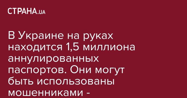 Сервис Опендатабот отмечает, что на данный момент в Украине 1,5 миллиона аннулированных паспортов, которые до сих пор остались на руках и могут быть использованы. Из них почти 1,3 млн - потеряны, 90 тысяч - похищенные, 25,7 тысяч - это паспорта умерших, которые не были сданы в ГМС.