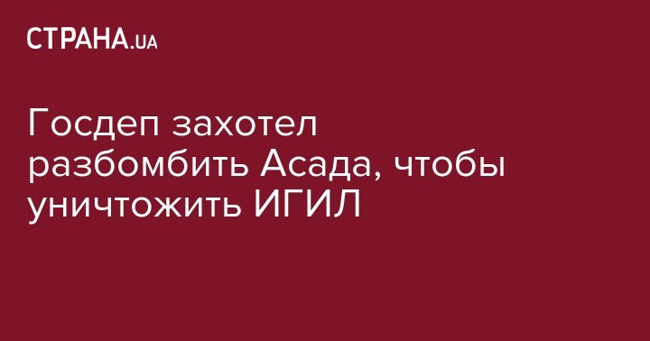 Государственный департамент США высказался за проведение военной операции в Сирии. Однако, целью этой операции, по его мнению, должна стать сама сирийская армия и президент этой страны Башар Асад. Американские дипломаты подписали внутренний документ с призывом "бомбить Дамаск, чтобы победить ИГИЛ", передает  The Wall Street Journal.