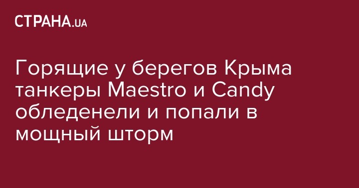 В Черном море у берегов Крыма начался шторм, в этой зоне находятся два танкера Maestro и Candy, которые продолжают гореть после взрыва газа 21 января. Об этом 8 февраля сообщает Радио Свобода со ссылкой на данные Росморречфлота.