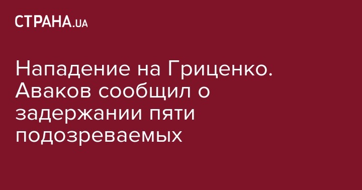 Сотрудники Нацполиции задержали пять человек, которые подозреваются в нападении на кандидата в президенты и лидера партии "Гражданская позиция" Анатолия Гриценко. Об этом cообщил министр внутренних дел Арсен Аваков на своей странице в Facebook.