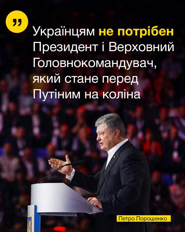 13:59 Петр Порошенко объявил, что идет на второй строк. Все люди в зале встали и аплодируют ему стоя. Он свел программу к двум-трем стратегическим целям - избавление людей от бедности, вступление страны в ЕС и НАТО, возвращение мира на выгодных для Украины условиях и восстановление территориальной независимости. Он говорит о том, что не позволит, чтобы "в офисе украинского президента сидел зацепленный на крючок агент РФ" или тот, "который станет перед хозяином Кремля на колени".