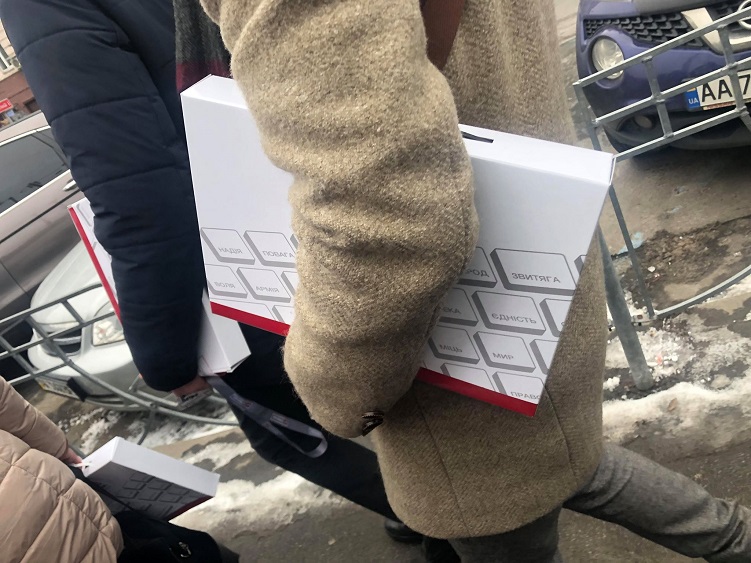 Коробки с листовками и календарями скорее напоминали упаковку от ноутбука Фото: Страна.ua