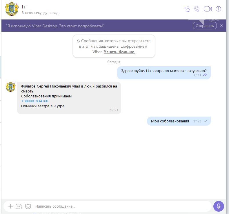 Затем в Viber начали отвечать, что кандидат в президенты провалился в канализационный люк и умер. .png)