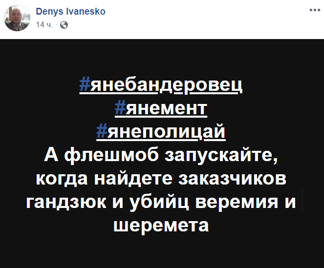 А флешмоб запускайте, когда найдете заказчиков гандзюк и убийц веремия и шеремета", - пишет Иванеско.