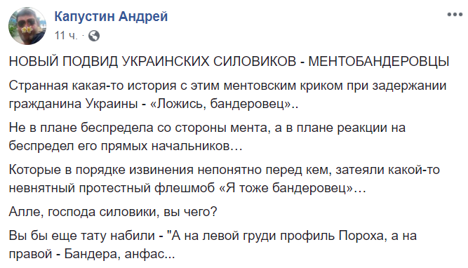 "Странная какая-то история с этим ментовским криком при задержании гражданина Украины - "Ложись, бандеровец"..