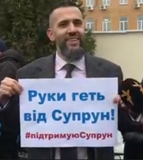 Около 13:00 под судом собрались люди в поддержку МОЗ и трансформации системы здравоохранения. Здесь выступили, как сторонники, так и противники Ульяны Супрун. Здесь же находится и заместитель министра экономического развития Максим Нефедов. Он держит в руках плакат "Руки геть від Супрун".