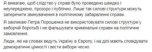 "Очевидно, что это политическая провокация. Очевидно, что это грязная борьба Порошенко за власть. Очевидно, что делается все, чтобы вывести БПП из-под удара и прилепить в это ужасное убийство "Батькивщину". Через прокуратуру переводят стрелки на человека, который твердо заявляет о своей непричастности и готов доказывать это в суде", - заявила Тимошенко.
