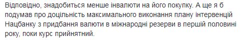 Однако, отметил Данилишин, "есть повод для спокойствия только в краткосрочной перспективе". В частности, ФРС может вернуться к вопросу о повышении ставок. Кроме того, замедление темпов роста мировой экономики может привести к падению спроса на украинский экспорт, а нерезиденты выйти из украинских ОВГЗ. "Я бы подумал о целесообразности максимального выполнения плана интервенций Нацбанка по покупке валюты в международные резервы в первой половине года, пока курс приемлемый", - добавил он.