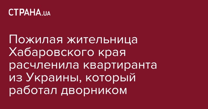 Российскую пенсионерку обвинили в убийстве и расчленении своего квартиранта из Украины. Об этом говорится в сообщении СУ СКР Хабаровского края.