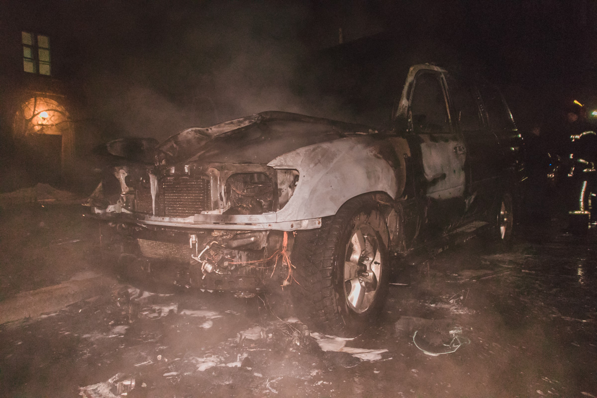 Вероятной причиной возгорания копы назвали занесение постороннего источника огня. По предварительной информации, неизвестные разбили стекло и забросили в салон внедорожника горючее вещество, в результате чего машина загорелась.