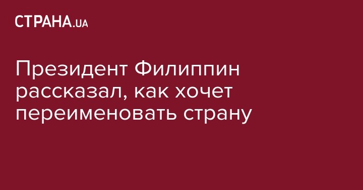 Филиппинский лидер Родриго Дутерте заявил о необходимости изменить название страны, передает агентство Bloomberg.