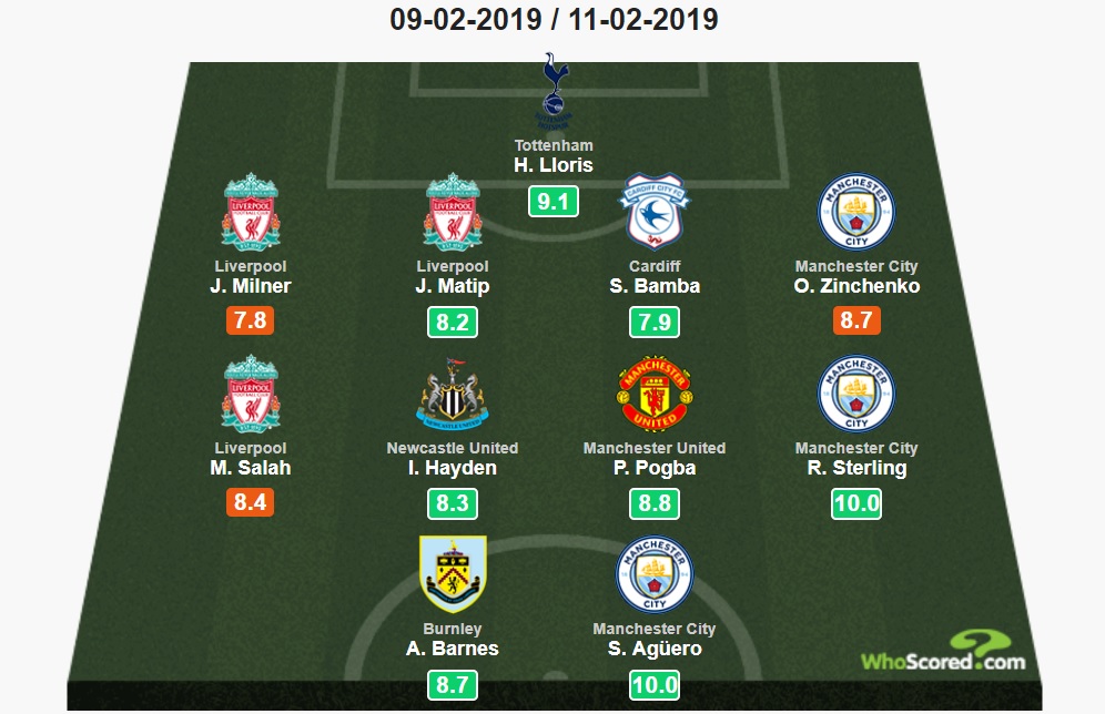 Защитники: Александр Зинченко ("Манчестер Сити"), Джеймс Милнер ("Ливерпуль"), Жоэль Матип ("Ливерпуль"), Сулейман Бамба ("Кардифф Сити"),