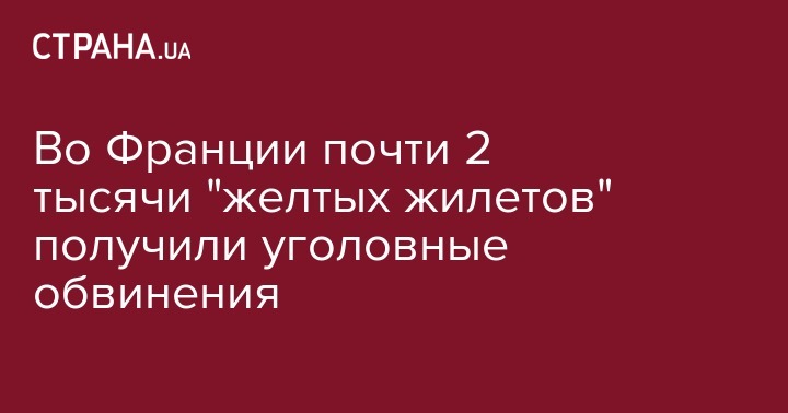 Вынесение 1800 уголовных обвинений - такой итог почти трех месяца протестов "желтых жилетов" по всей Франции. Такую цифру озвучил премьер-министр Эдуар Филипп во время парламентских дебатов, передает Bloomberg.