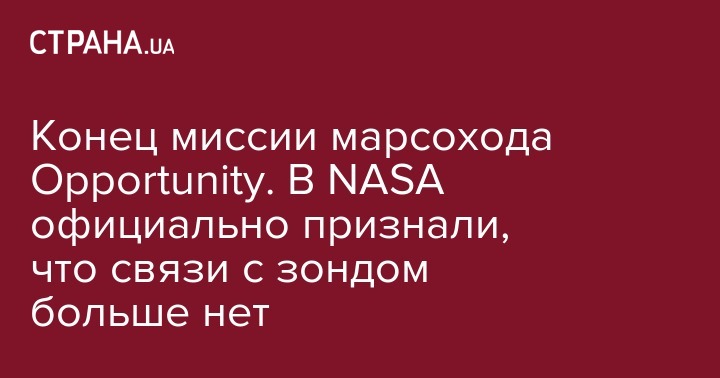 Напомним, что 12 февраля NASA сообщило, что предпримет финальную попытку связаться с марсоходом Opportunity. Но она оказалась неудачной. Последний раз зонд выходил на связь восемь месяцев назад.