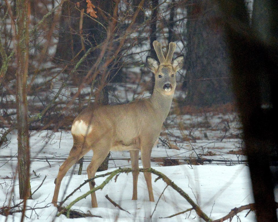 Опубликовано фото застенчивого оленя, который к весне отращивает пушистые рога в зоне отчуждения ЧАЭС