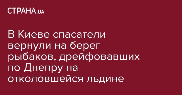 Киевские спасатели вернули на берег двух рыбаков, которые оказались посреди Днепра на отколовшейся льдине. ЧП произошло в четверг, 14 февраля. Как сообщается на сайте ГСЧС в Киеве, в оперативно-координационный центр сообщили, что двоих рыбаков на льдине унесло течением к Северному мосту. Они находились в 50 метрах от берега.