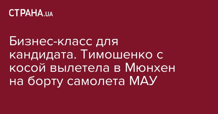 Кандидат в президенты, лидер партии "Батькивщина" Юлия Тимошенко 15 феврваля вылетела из Киева в Мюнхен на международную конференцию по безопасности. Тимошенко купила билет на самолет авикомпании МАУ. Об этом "Стране" рассказали очевидцы.