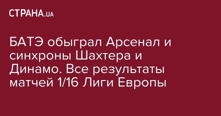 Результаты всех первых матчей 1/16 финала Лиги Европы: