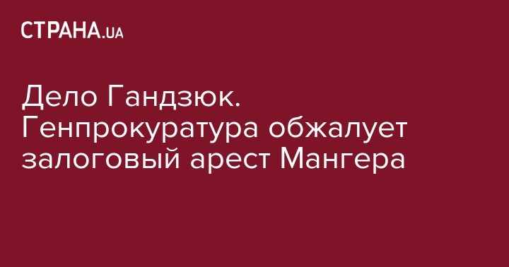 Генеральная прокуратура обжалует арест с залогом подозреваемого в организации убийства  активистки Екатерины Гандзюк председателя Херсонского облсовета Владислава Мангера. Об этом сообщила пресс-секретарь генерального прокурора Юрия Луценко Лариса Сарган, передают Украинские новости.