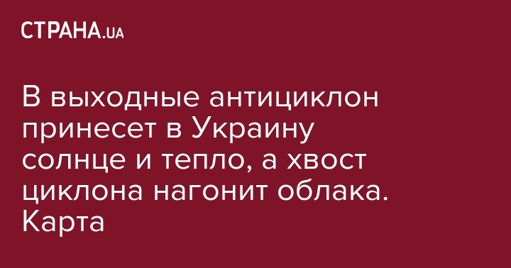 В выходные антициклон принесет в Украину солнце и тепло, а хвост циклона нагонит облака. Карта