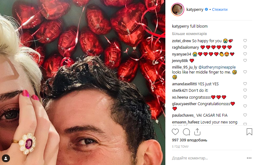 42-летний британский актер Орландо Блум и американская певица Кэти Перри объявили о помолвке. Сообщение об этом появилось в соцсети - о помолвке рассказала счастливая невеста на своей странице в Instagram.