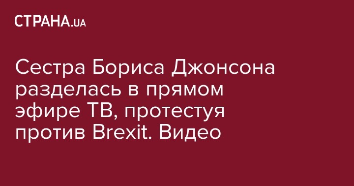 Сестра бывшего министра иностранных дел Великобритании Бориса Джонсона Рейчел разделась в прямом эфире телеканала Sky News, таким образом, выступив против выхода Великобритании из Евросоюза (Brexit).