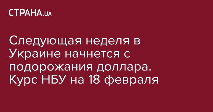 Следующая неделя в Украине начнется с подорожания доллара. Курс НБУ на 18 февраля