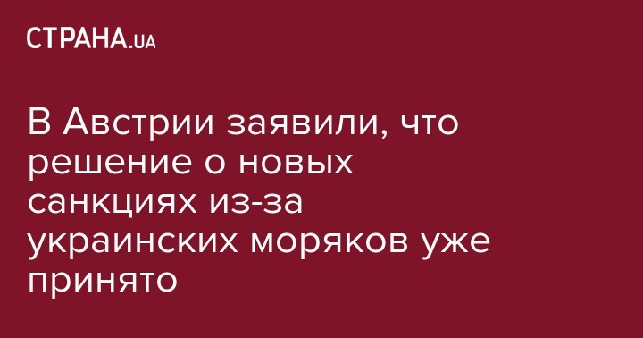 Решение о введении новых антироссийских санкций из-за захвата украинских судов и пленения моряков в Керченском проливе уже принято. Об этом со ссылкой на главу МИД Австрии Карин Кнайсль пишет "Коммерсантъ"