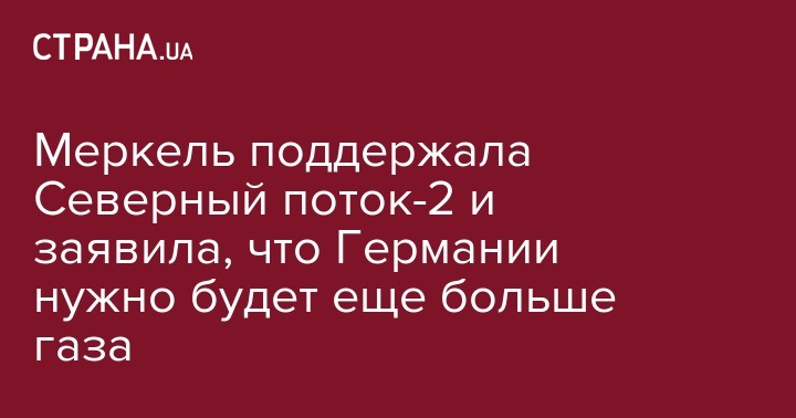 Она сказала, что другие газопроводы, например "Ямал" и другие, должны продолжать существовать. И что Германия намерена увеличить потребление газа, поскольку страна отказалась от атомной энергии.