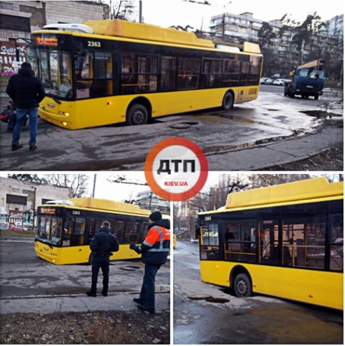 В субботу, 16 февраля, в Святошинском районе Киева на улице Чернобыльской под троллейбусом N39 провалился асфальт. Об этом сообщает dtp.kiev.ua на своей странице в Facebook.