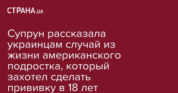 Супрун рассказала украинцам случай из жизни американского подростка, который захотел сделать прививку в 18 лет вопреки родителям