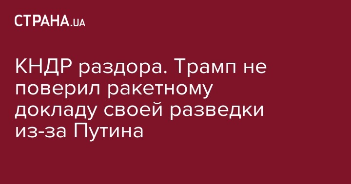 Президент США Дональд Трамп не поверил собственной разведке о том, что КНДР обладает ракетами, способными достичь территории США, так как Путин сказал ему, что у Пхеньяна таких ракет нет.